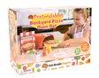 - Includes peel, 4 pizza slices, felt toppings, toppings tray, cheese and pepper shakers, pizza cutter, spatula, menu, 2 plates, oven/storage box