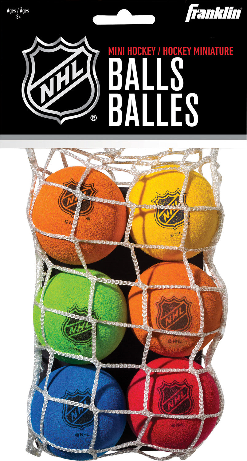 Franklin Sports Mini Hockey Foam Balls are the perfect gift for any young hockey fan! These 2" hockey balls are made of soft foam which makes them perfect for indoor use. Play mini hockey, knee hockey, or floor hockey. This set comes complete with 6 brightly colored foam balls, so they are easy to see and you'll have plenty of replacements. Get the game started with Franklin's mini foam hockey balls today!