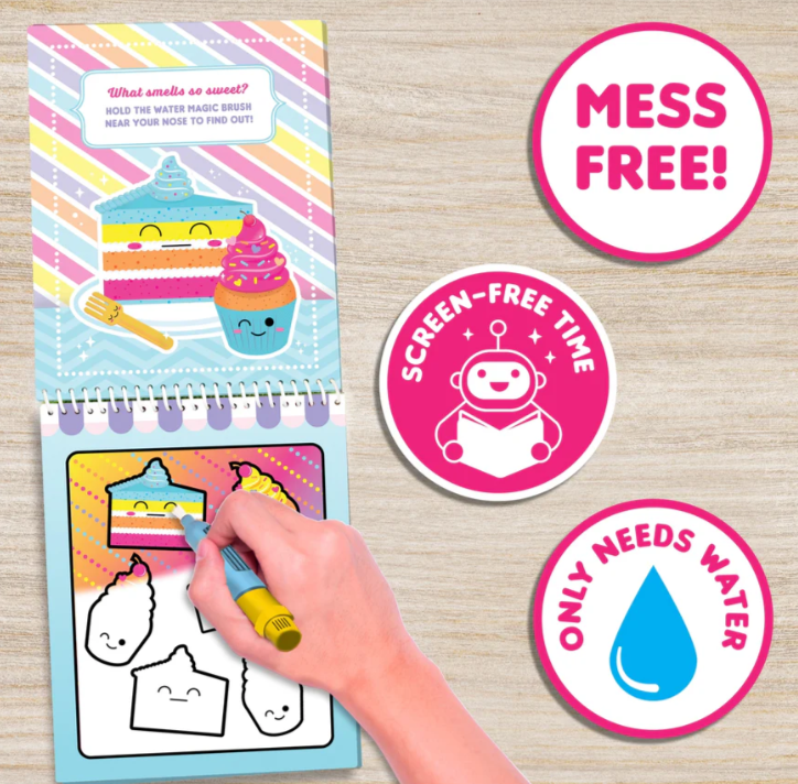 Water Magic is an activity book that is perfect for travel days in the car or on the plane. Fill the brush with water and apply it to the scene boards to watch the colors magically appear! Let it dry for 5 minutes and you can do it over and over again. The brush is scented to match the theme of the book too! It's no-mess activity to end the question, "Are we there yet?"