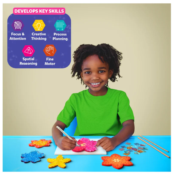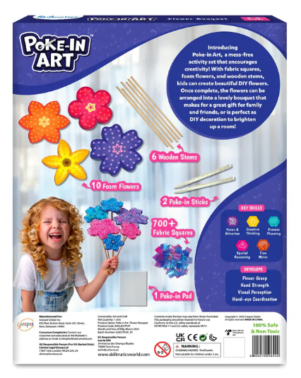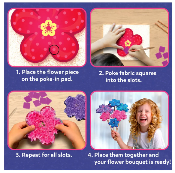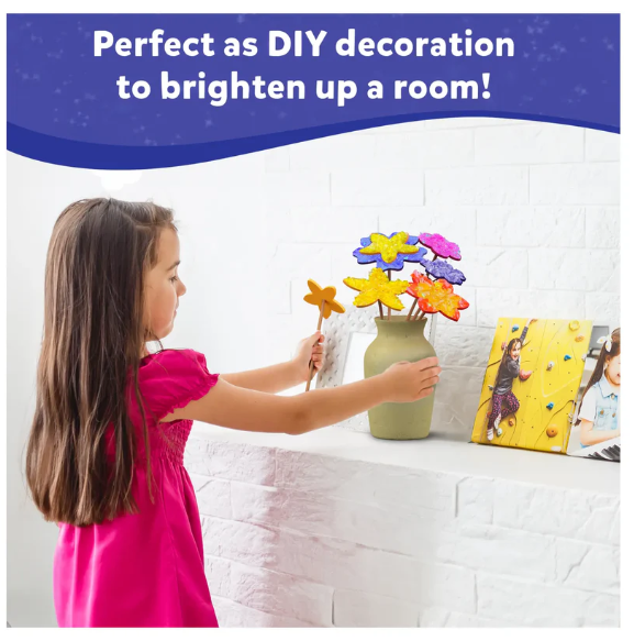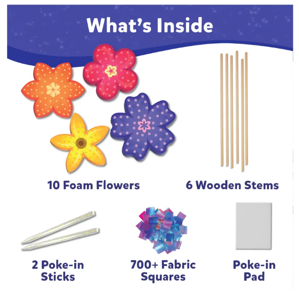 This mess-free craft activity encourages creativity! Kids will make their own flower designs using fabric squares that are poked into foam to create petals and then mounted on wooden stems. Once complete, these beautiful DIY flowers can be arranged into a lovely bouquet.